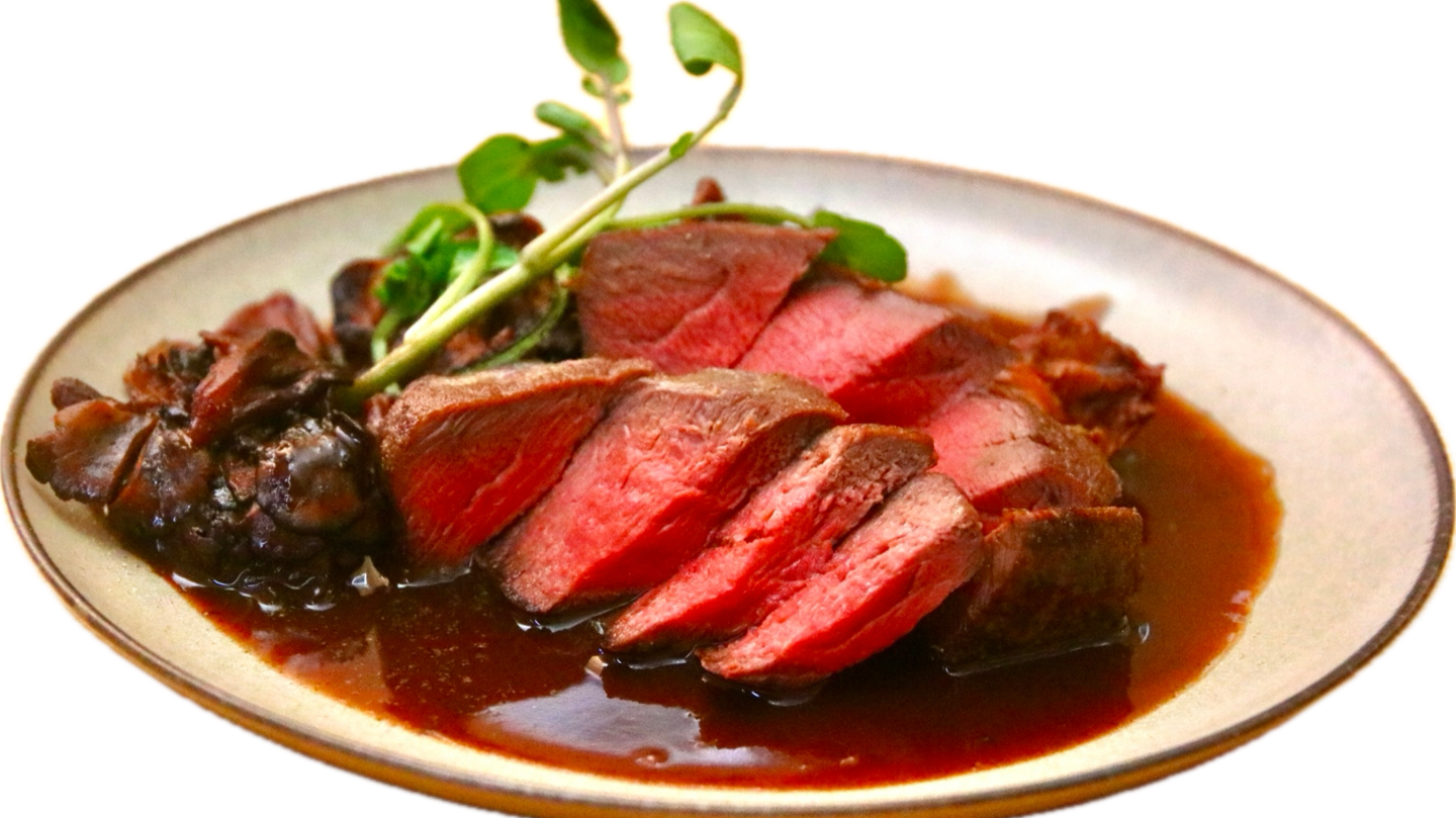 Roasted Deer with Red Wine and Maitake Mushroom Sauce